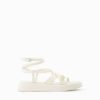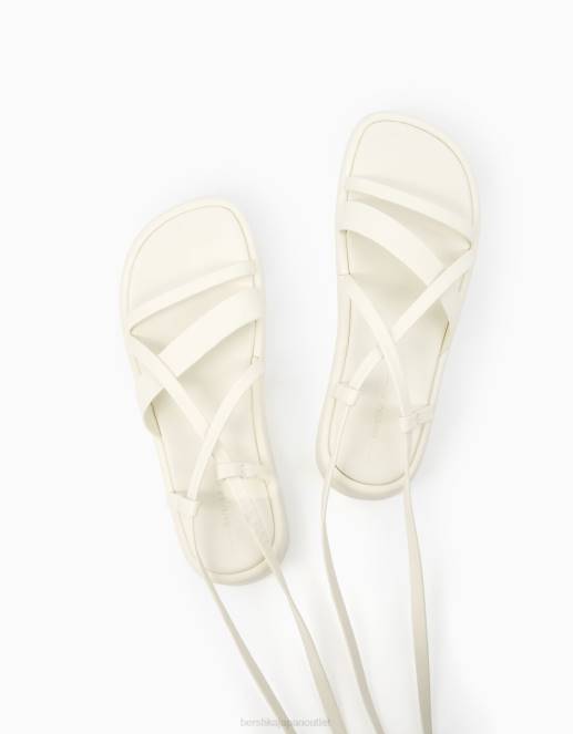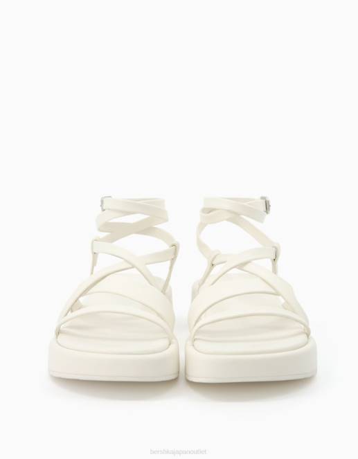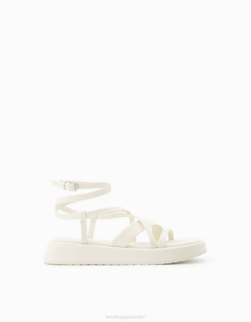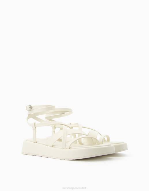 ユニセックス Bershka アンクルストラップ付きフラットプラットフォームサンダル 60444172 履物 白