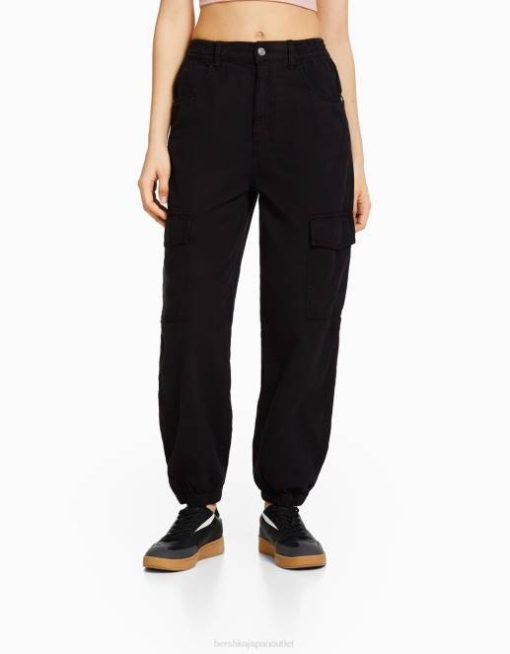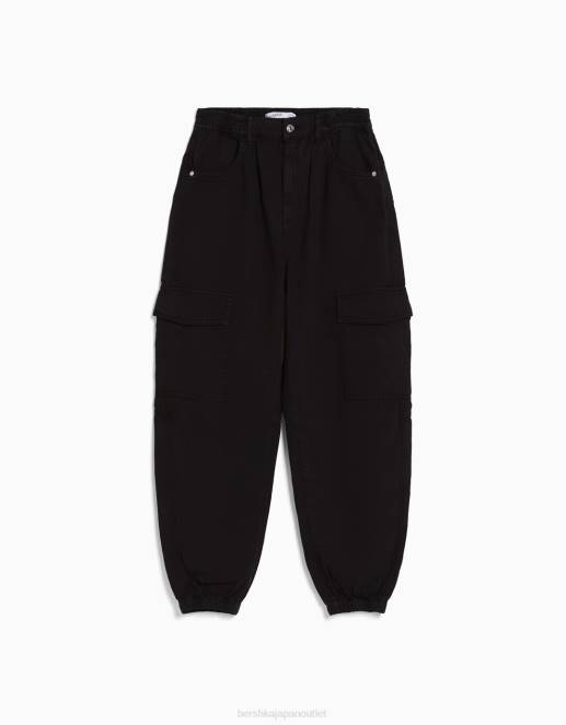 ユニセックス Bershka ウエストにギャザーとポケットが付いたコットンジョガーパンツ 60443890 衣類 黒
