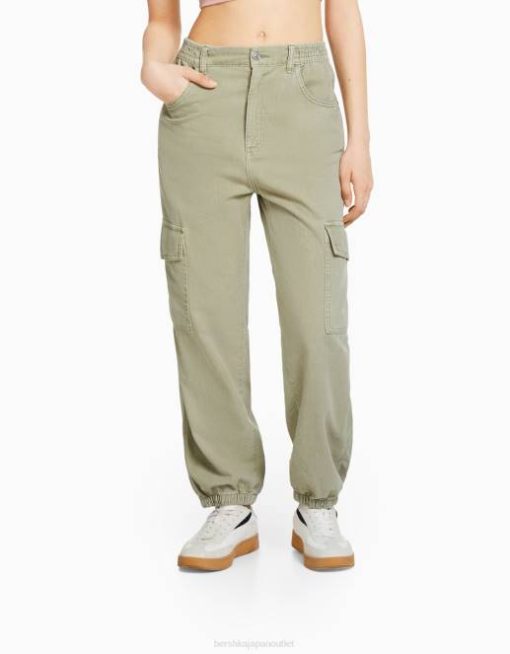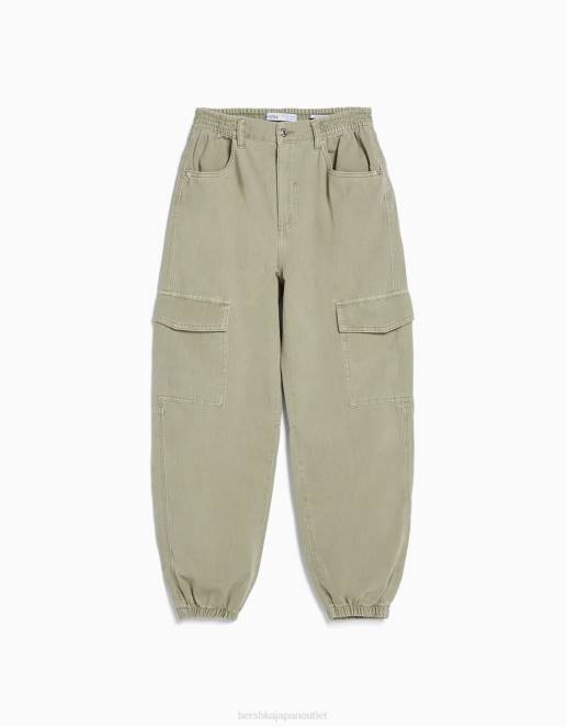ユニセックス Bershka ウエストにギャザーとポケットが付いたコットンジョガーパンツ 60443892 衣類 緑