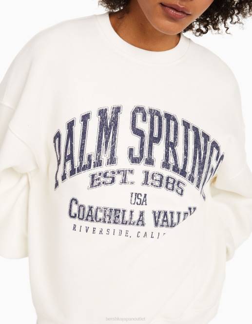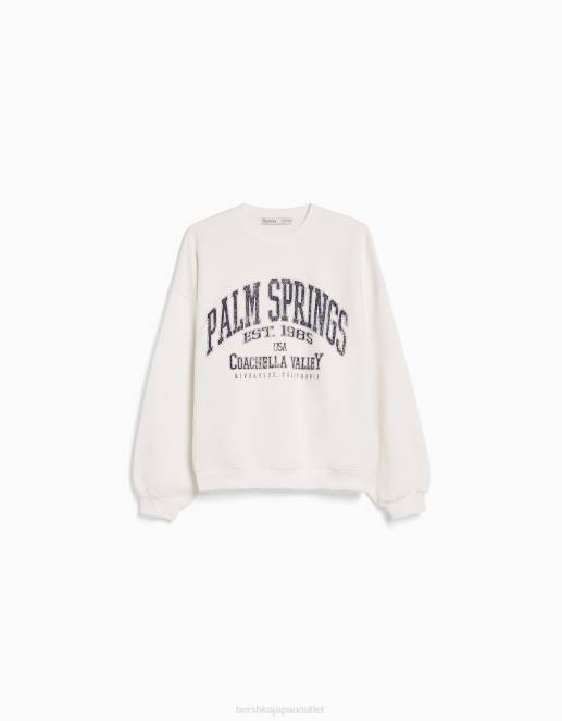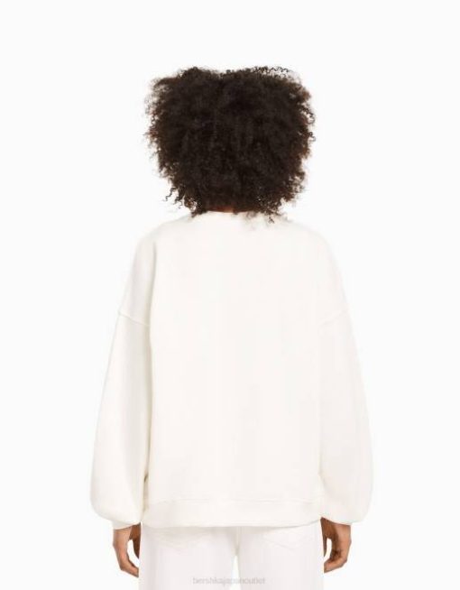 ユニセックス Bershka オーバーサイズプリントスウェットシャツ 60444117 衣類 白