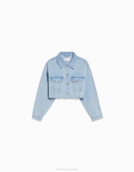 ユニセックス Bershka クロップドデニムジャケット 60444151 衣類 ライトブルー