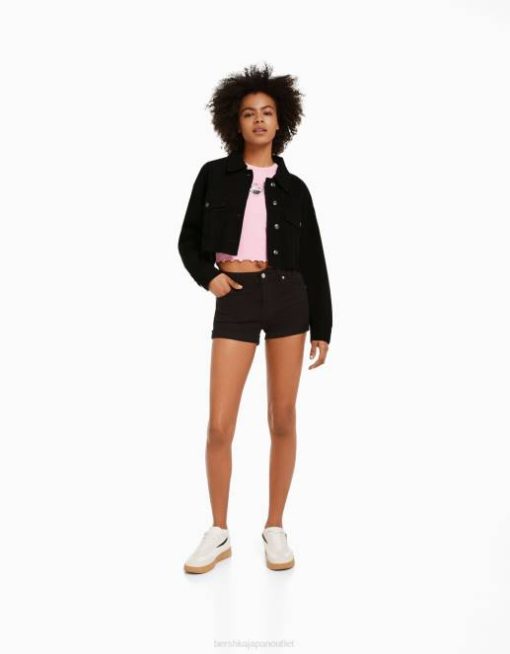 ユニセックス Bershka クロップドデニムジャケット 60444153 衣類 黒