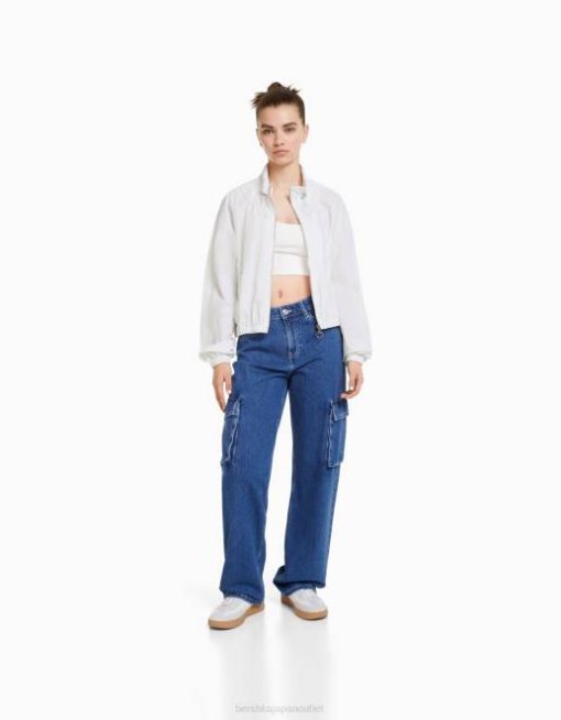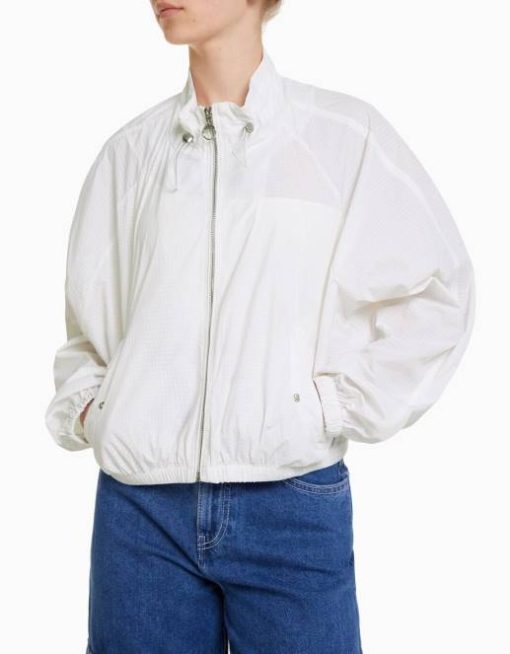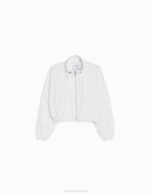 ユニセックス Bershka クロップドナイロンリップストップテクスチャージャケット 60444158 衣類 白