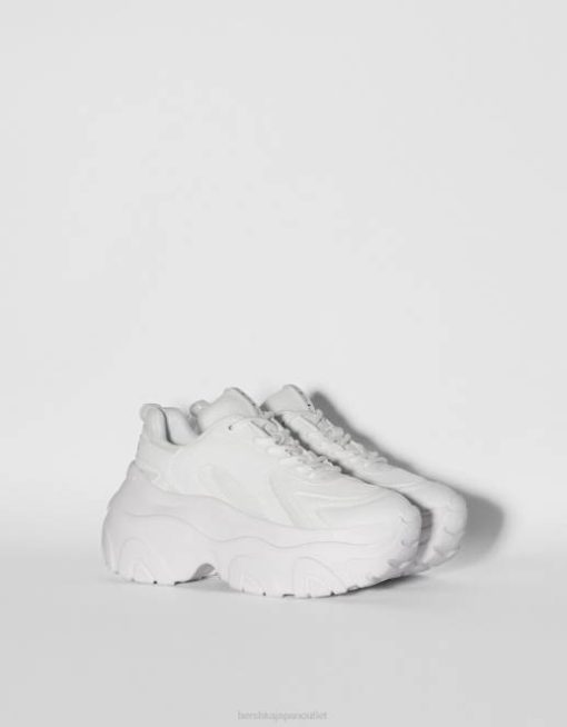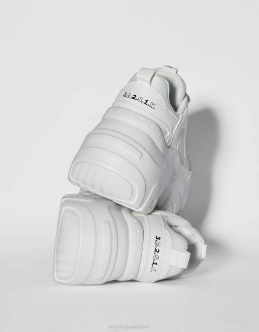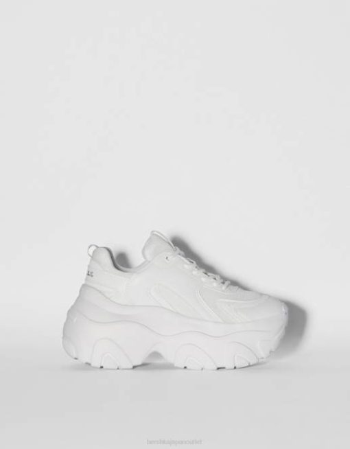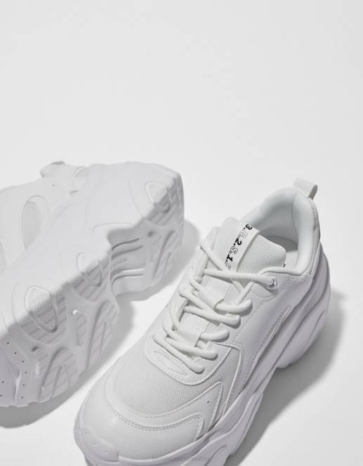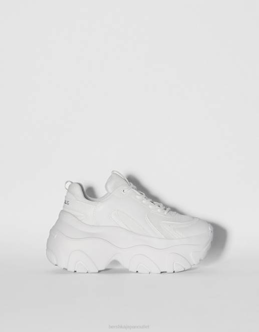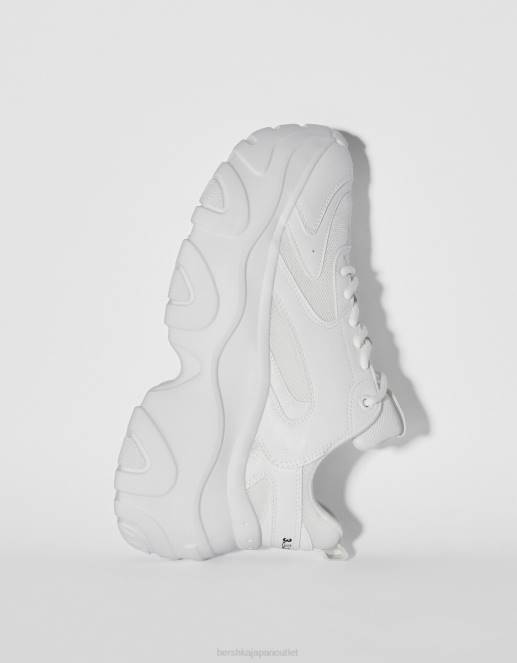 ユニセックス Bershka コントラストメッシュとXLソールのスニーカー 60444194 履物 白