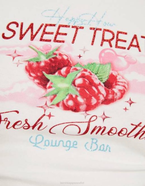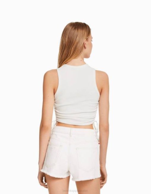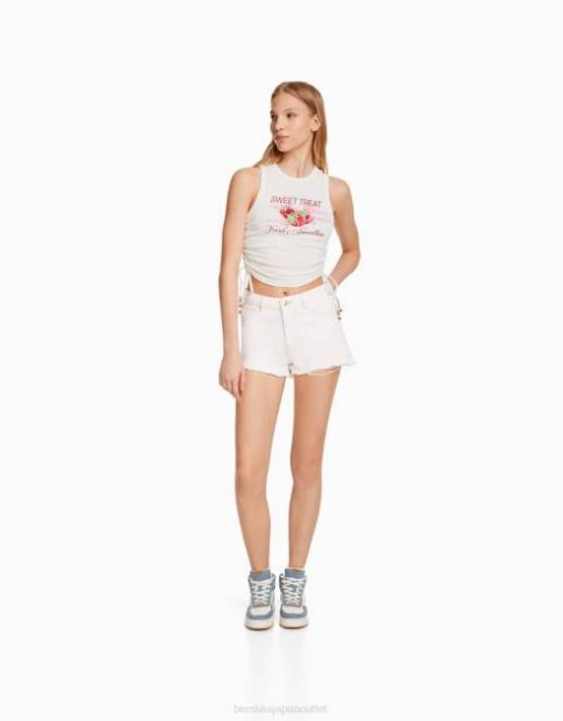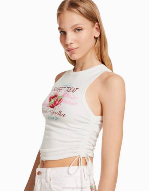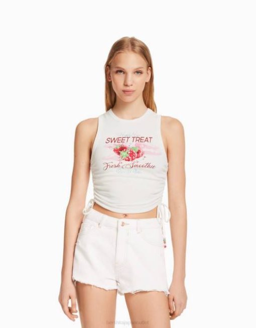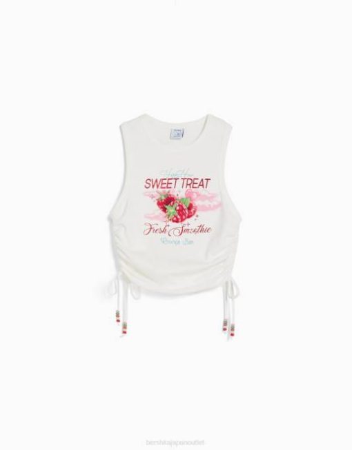 ユニセックス Bershka サイドにギャザーを施したプリント ノースリーブ T シャツ 60443700 衣類 オフホワイト