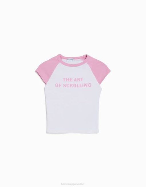 ユニセックス Bershka ショートラグランスリーブのプリントTシャツ 60443711 衣類 白