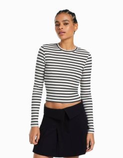 ユニセックス Bershka ショートラグランスリーブのプリントTシャツ 60443712 衣類 白黒