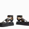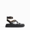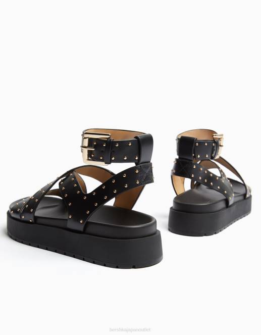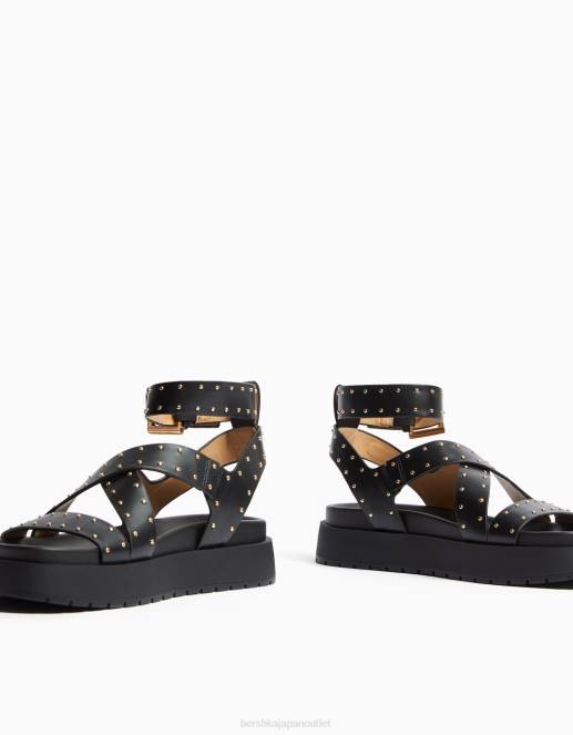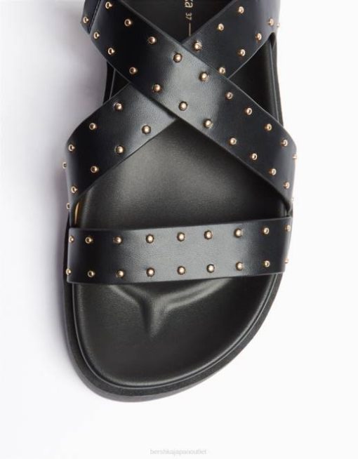 ユニセックス Bershka スタッズ付きフラットプラットフォームサンダル 60444169 履物 黒