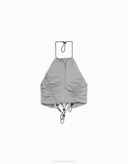 ユニセックス Bershka ストッパー付きナイロンホルターネッククロップトップ 60443784 衣類 グレー