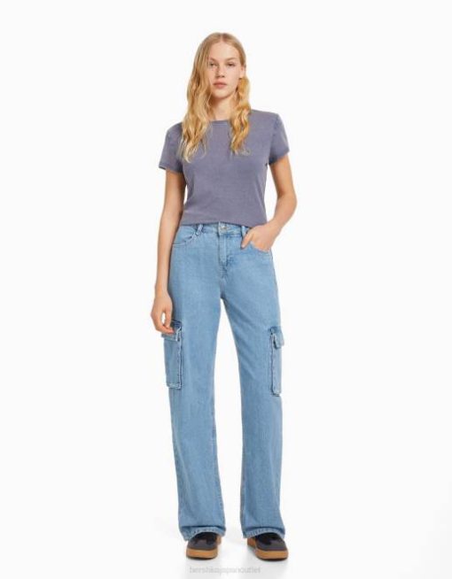 ユニセックス Bershka ストレートフィット カーゴジーンズ 60443911 衣類 ライトブルー