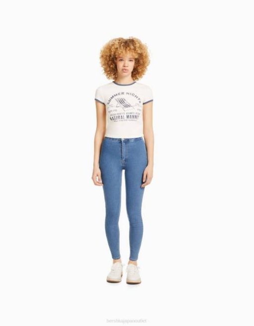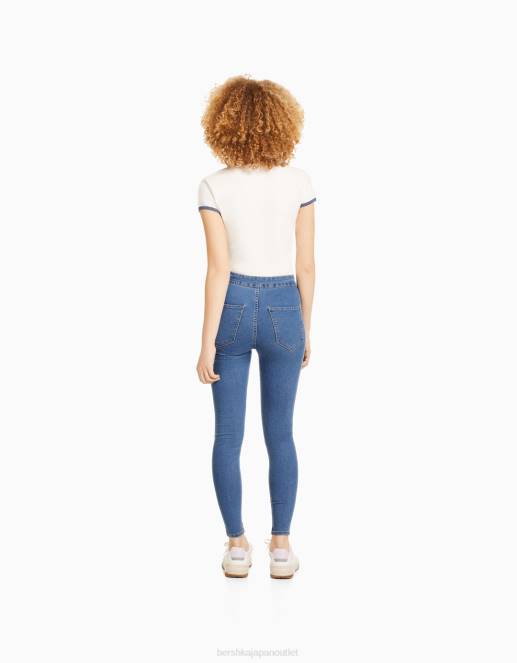 ユニセックス Bershka スーパーハイライズデニムレギンス 60443935 衣類 ライトブルー