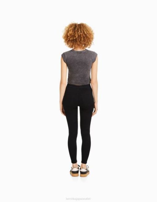 ユニセックス Bershka スーパーハイライズデニムレギンス 60443936 衣類 黒