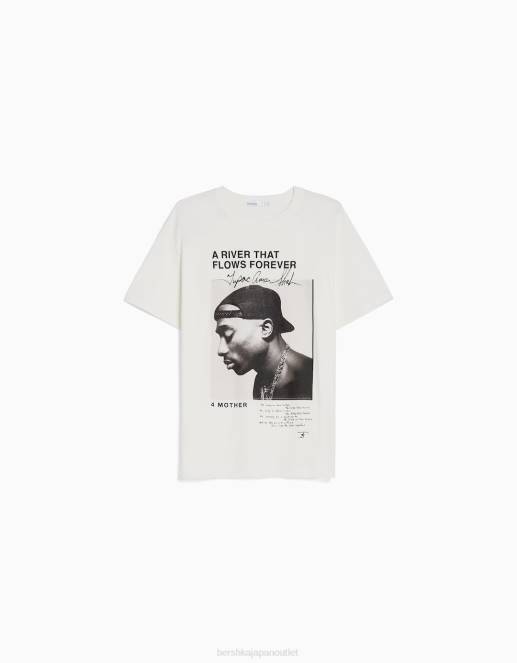 ユニセックス Bershka トゥパック プリント 半袖 T シャツ 60443767 衣類 オフホワイト