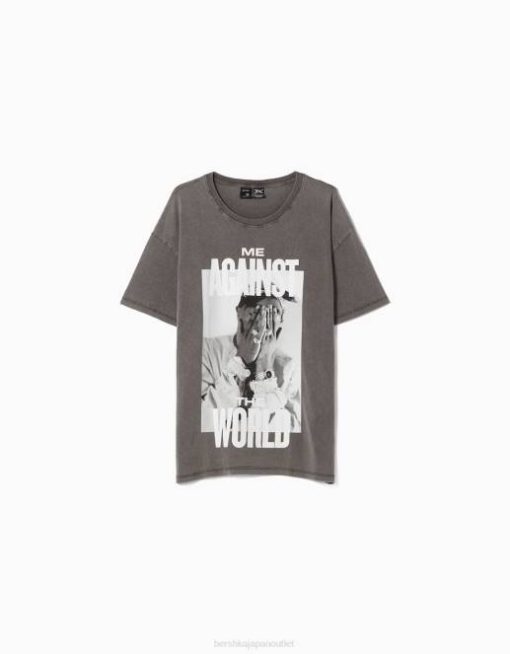 ユニセックス Bershka トゥパック プリント 半袖 T シャツ 60443704 衣類 グレー