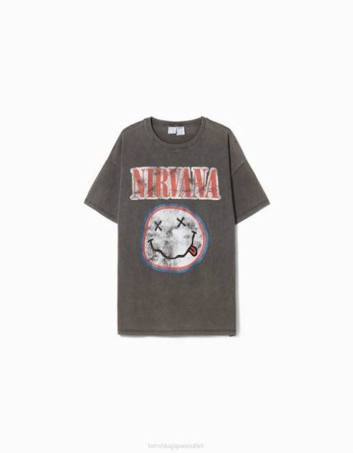 ユニセックス Bershka ニルヴァーナ プリント 半袖 Tシャツ 60443703 衣類 グレー