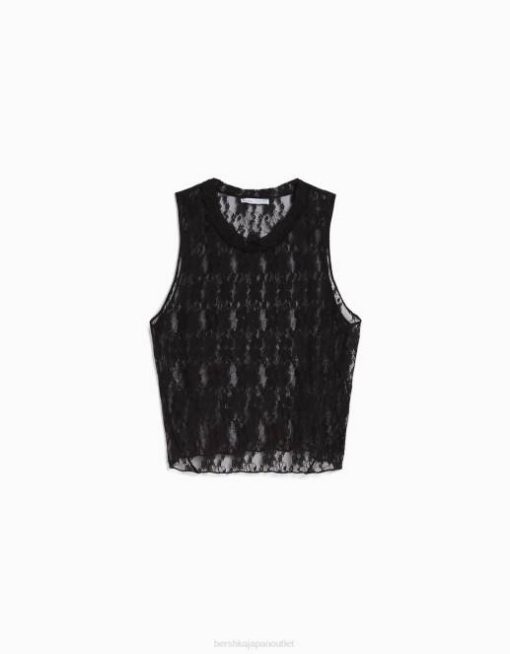 ユニセックス Bershka ノースリーブレースシャツ 60443860 衣類 黒