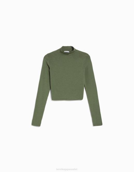 ユニセックス Bershka ハイネック長袖Tシャツ 60443822 衣類 カーキ