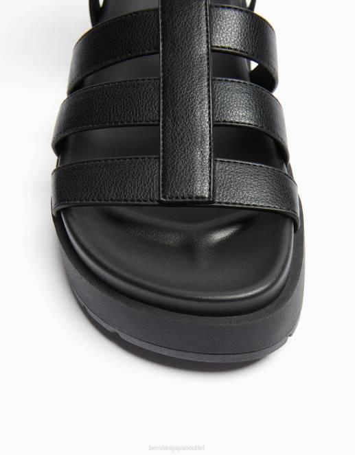 ユニセックス Bershka フラットケージサンダル 60444168 履物 黒