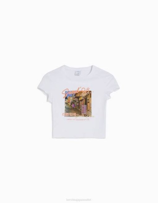 ユニセックス Bershka プリント半袖Tシャツ 60443742 衣類 オフホワイト