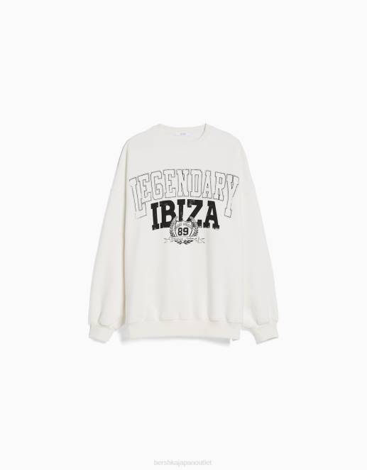 ユニセックス Bershka プリント長袖スウェットシャツ 60444128 衣類 クリーム