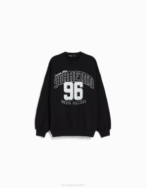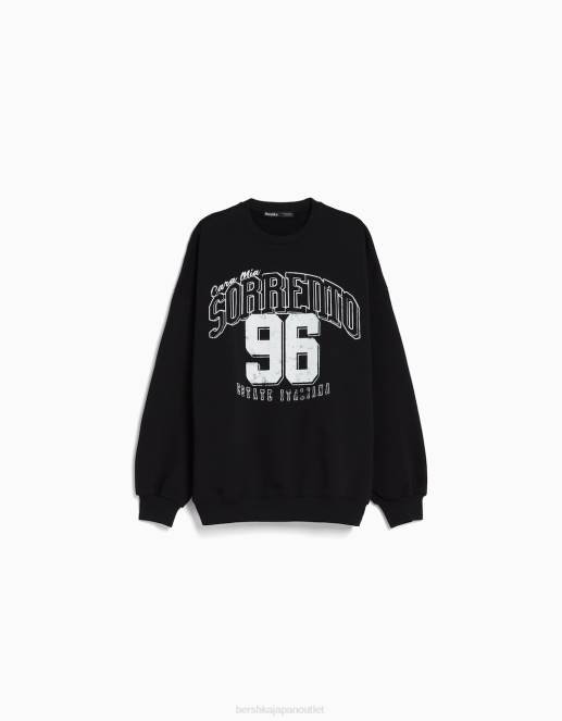 ユニセックス Bershka プリント長袖スウェットシャツ 60444130 衣類 黒