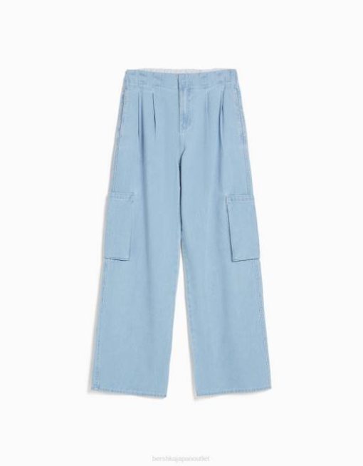 ユニセックス Bershka プリーツカーゴジーンズ 60443933 衣類 ライトブルー