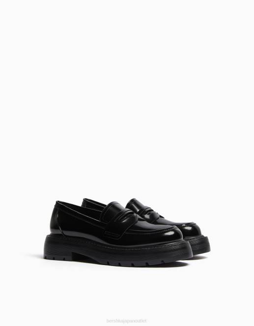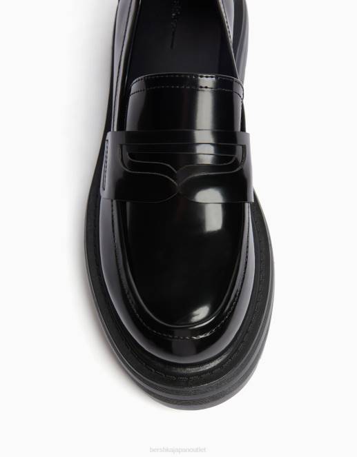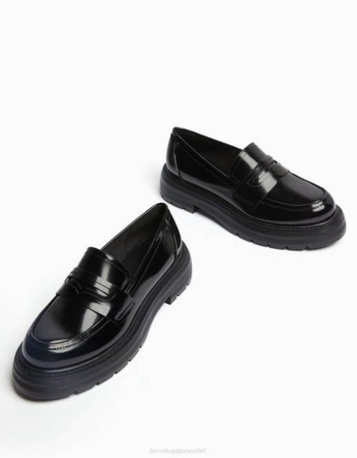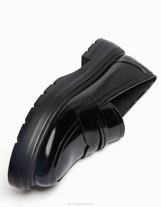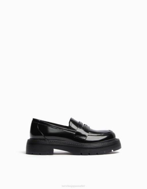 ユニセックス Bershka ペニーストラップとトラックソールを備えたローファー 60444198 履物 黒