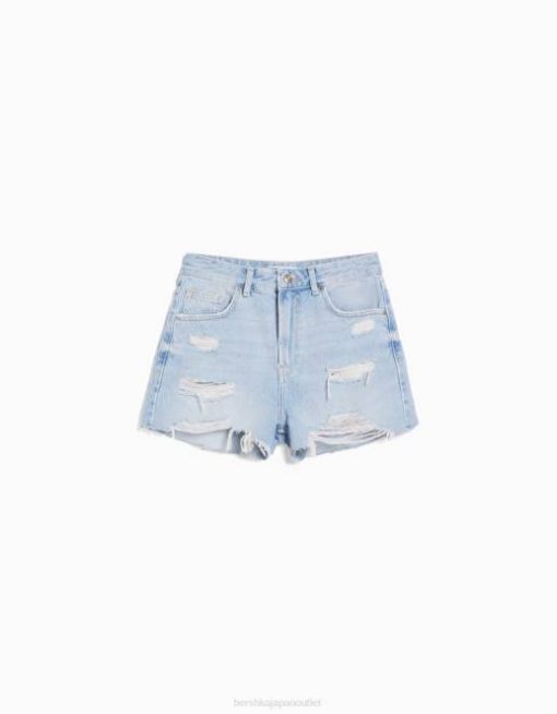 ユニセックス Bershka ポケット付き破れたデニムショートパンツ 60444046 衣類 ライトブルー