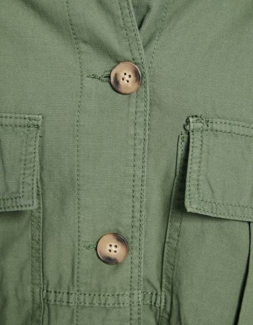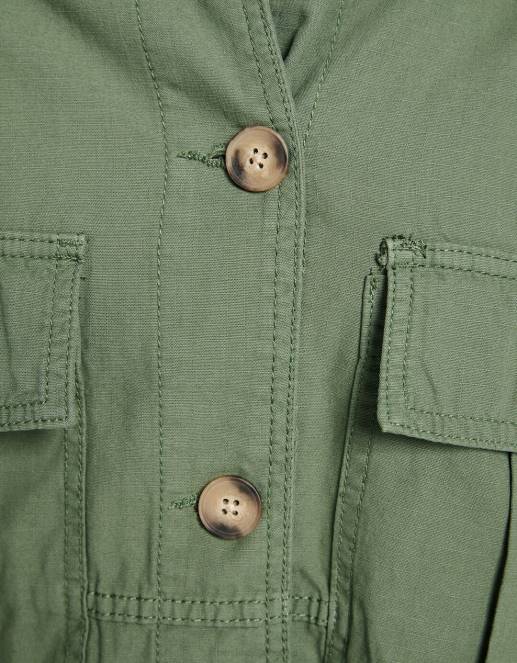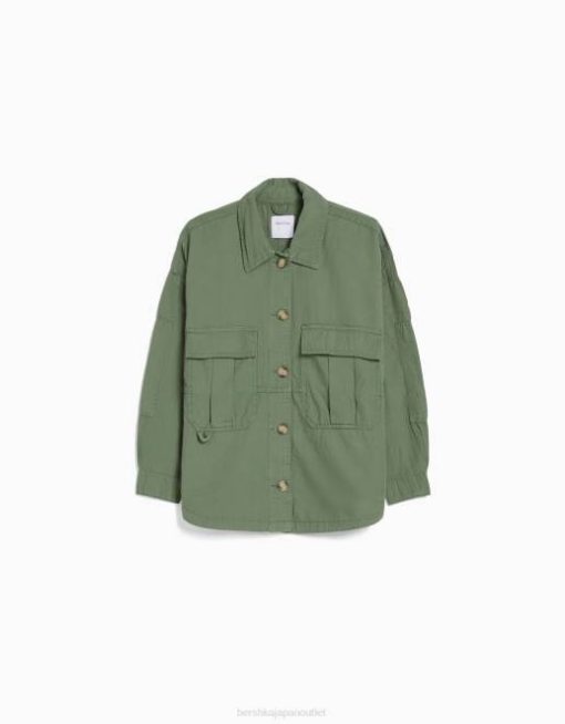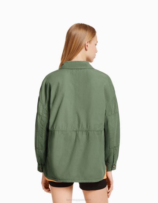 ユニセックス Bershka ポケット付き長袖コットンオーバーシャ​​ツ 60444163 衣類 カーキ