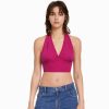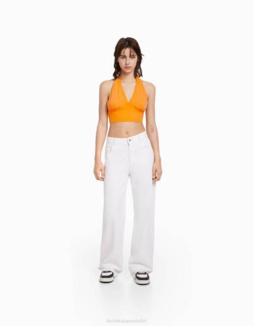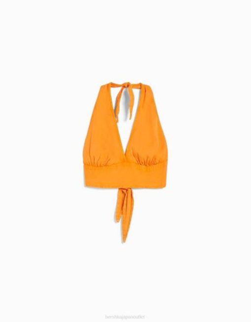 ユニセックス Bershka ラスティックなリネンブレンドクロップトップ 60443772 衣類 オレンジ