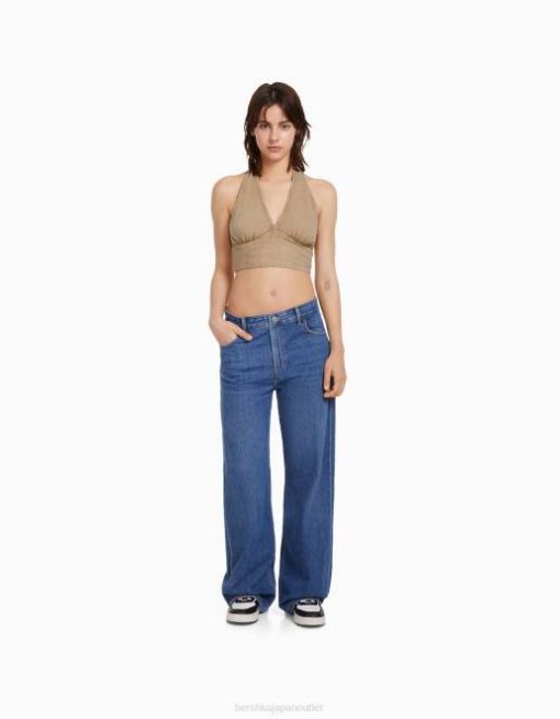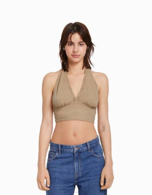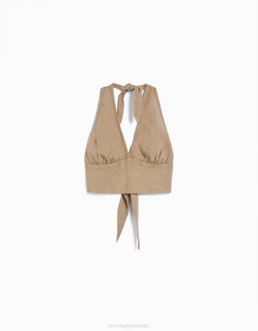 ユニセックス Bershka ラスティックなリネンブレンドクロップトップ 60443770 衣類 ベージュ