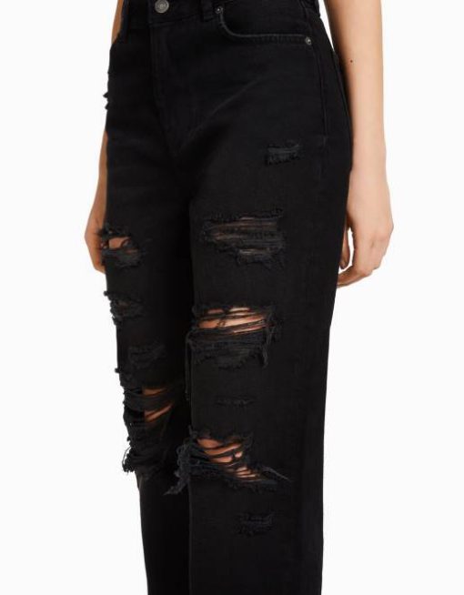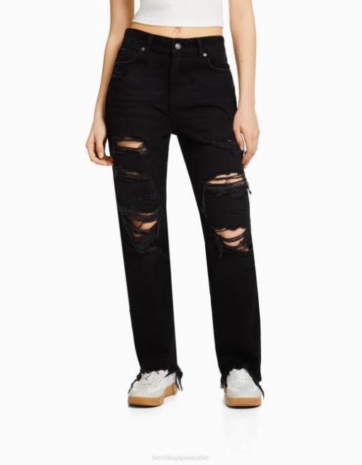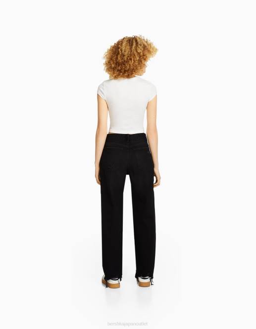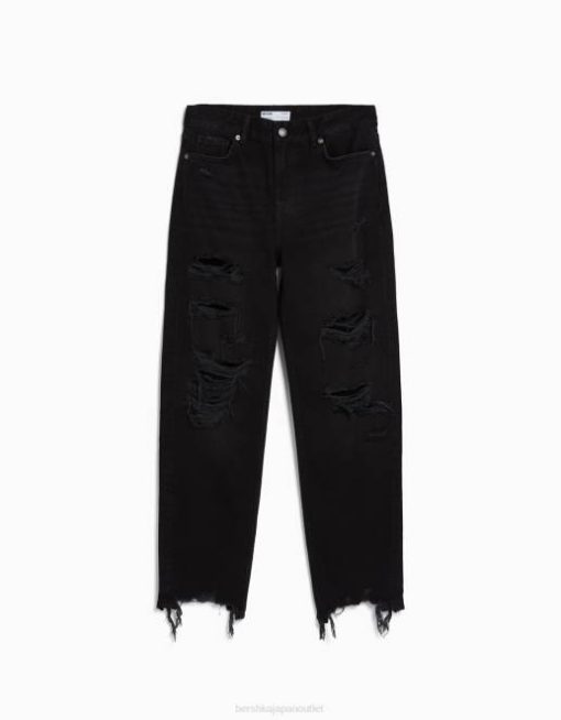 ユニセックス Bershka リップド クロップド ストレートレッグ ママ ジーンズ 60443963 衣類 黒