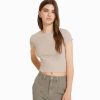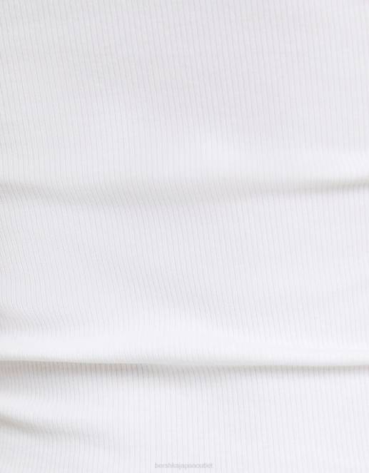 ユニセックス Bershka リブ半袖Tシャツ 60443717 衣類 オフホワイト