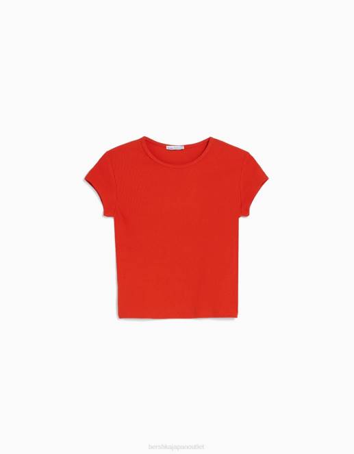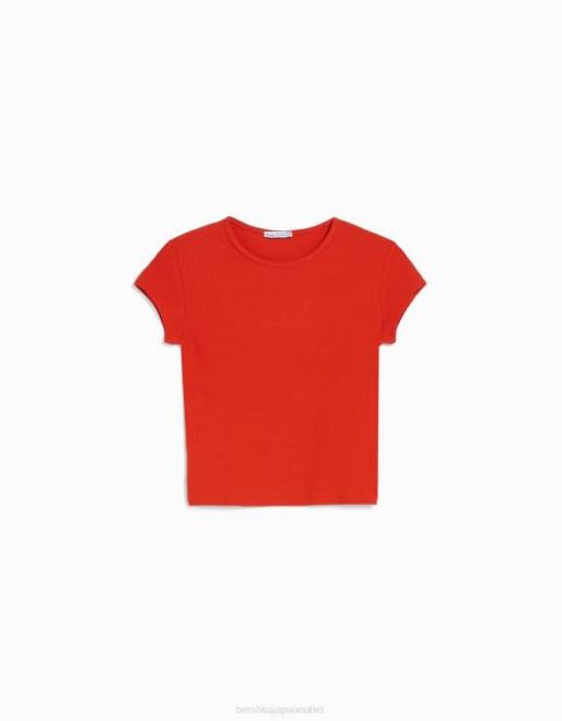 ユニセックス Bershka リブ半袖Tシャツ 60443719 衣類 赤