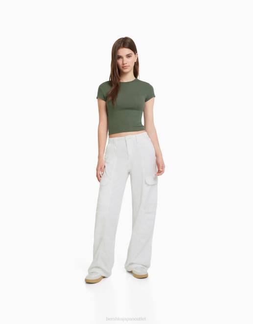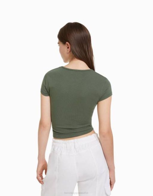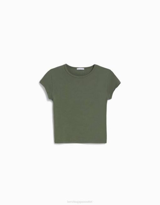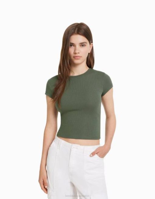 ユニセックス Bershka リブ半袖Tシャツ 60443720 衣類 カーキ