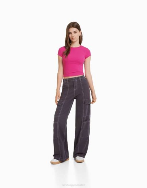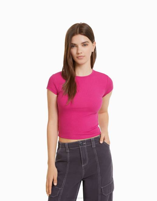 ユニセックス Bershka リブ半袖Tシャツ 60443748 衣類 フクシア