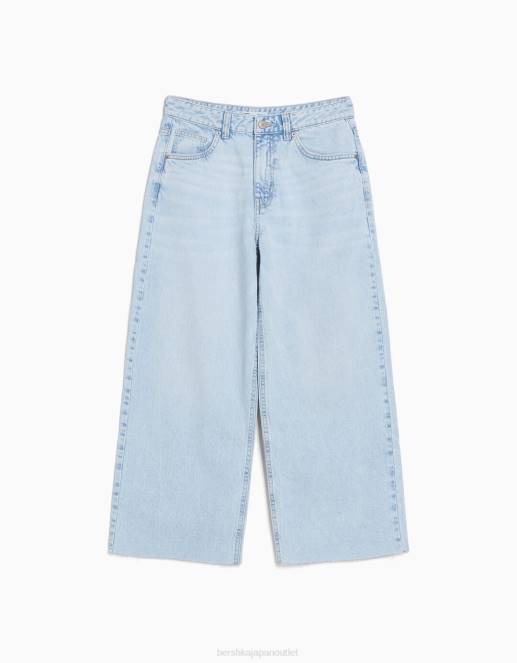 ユニセックス Bershka ワイドレッグ クロップドジーンズ 60443988 衣類 ライトブルー