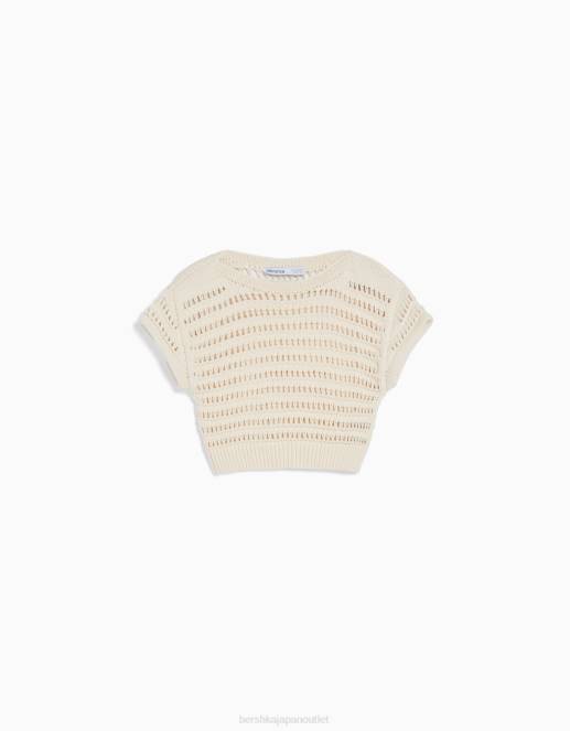 ユニセックス Bershka 半袖オープンニットセーター 60443714 衣類 クリーム