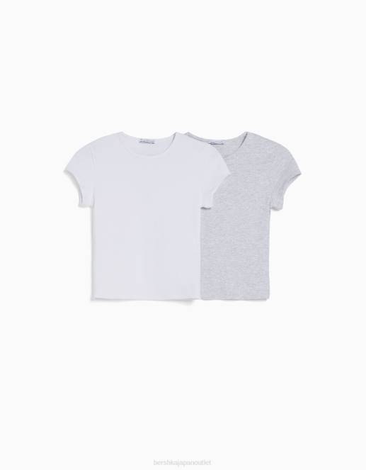ユニセックス Bershka 半袖リブTシャツ2枚組 60443791 衣類 色とりどりの