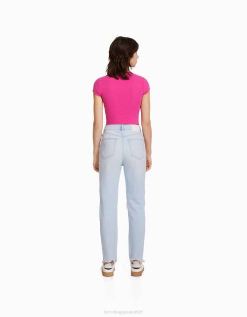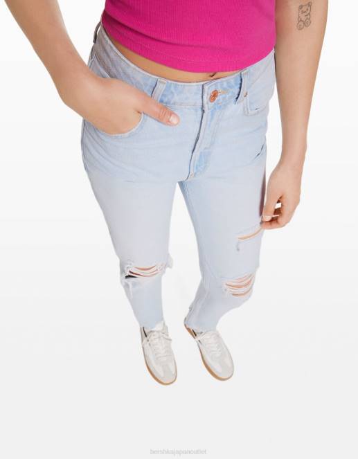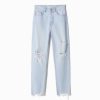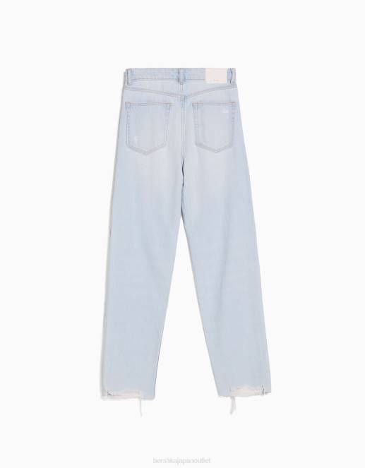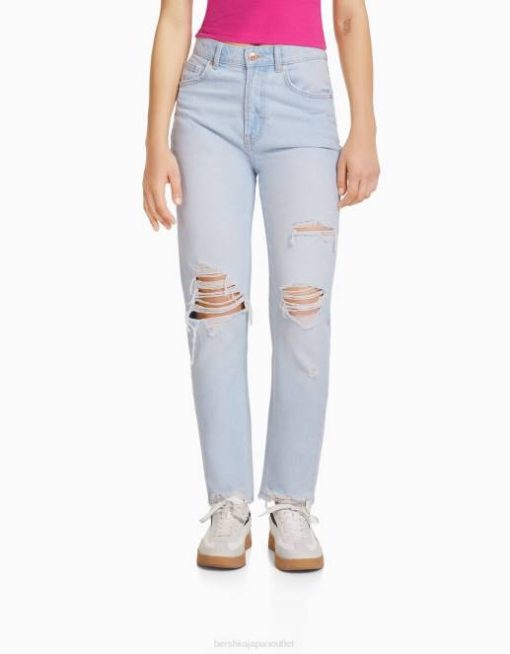 ユニセックス Bershka 破れたママジーンズ 60443949 衣類 ライトブルー