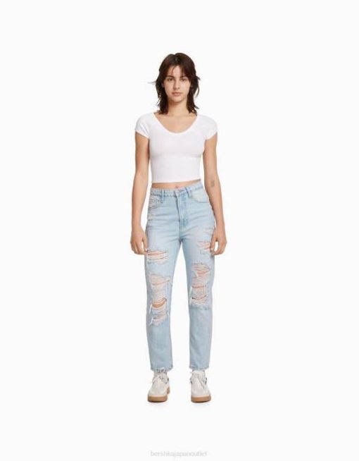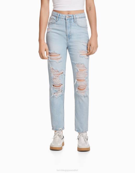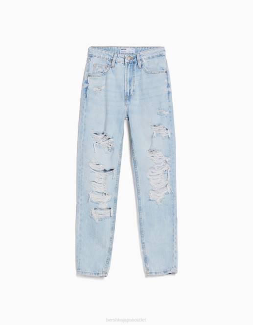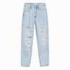 ユニセックス Bershka 破れたママジーンズ 60443984 衣類 ライトブルー