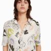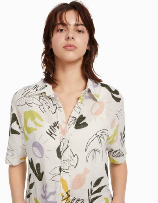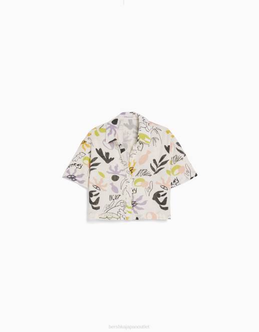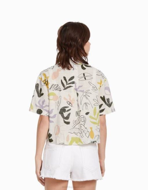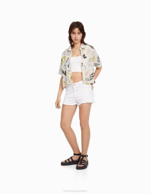ユニセックス Bershka 素朴なテクスチャード半袖シャツ 60443795 衣類 白黒