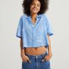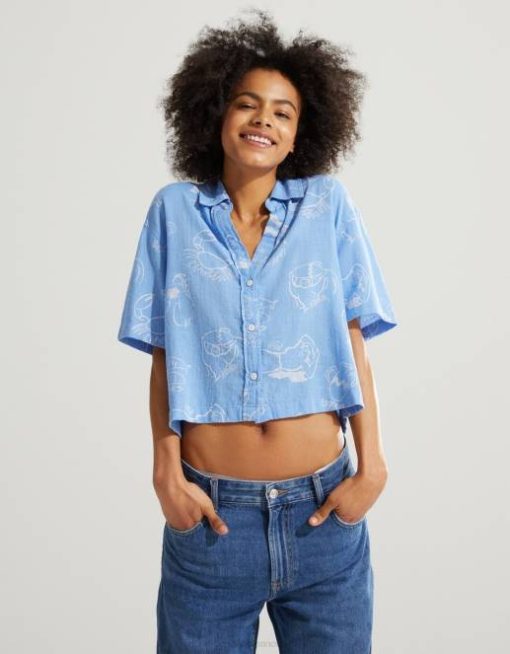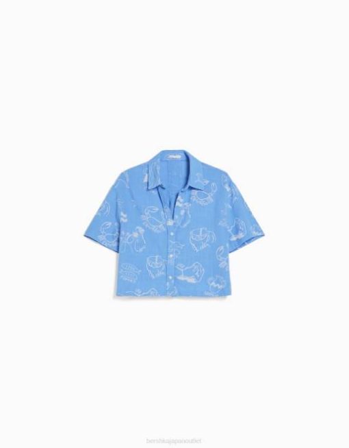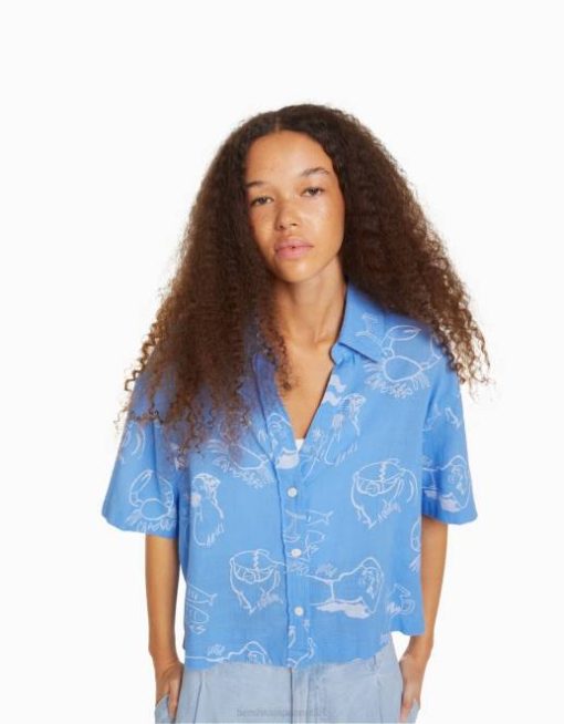 ユニセックス Bershka 素朴なテクスチャード半袖シャツ 60443793 衣類 青