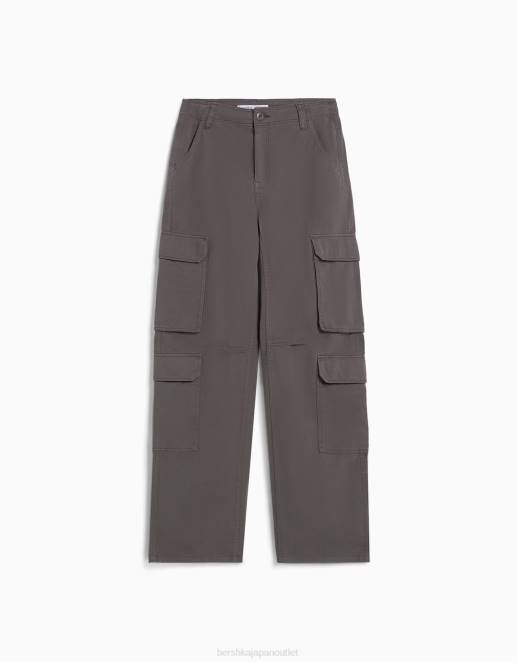 ユニセックス Bershka 調節可能なマルチポケットツイルカーゴパンツ 60443874 衣類 濃い灰色