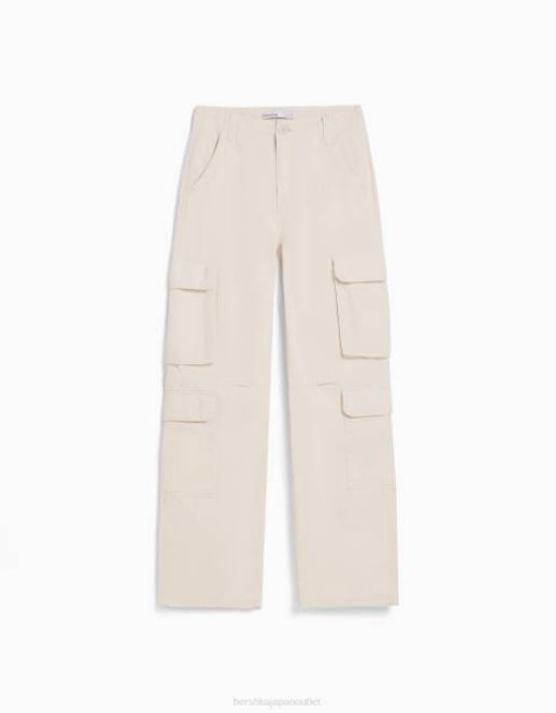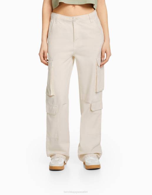 ユニセックス Bershka 調節可能なマルチポケットツイルカーゴパンツ 60443872 衣類 クリーム