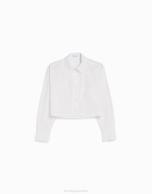 ユニセックス Bershka 長袖クロップドポプリンシャツ 60443809 衣類 白