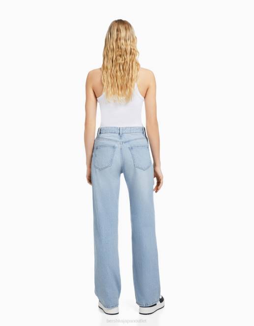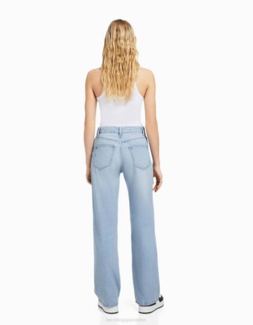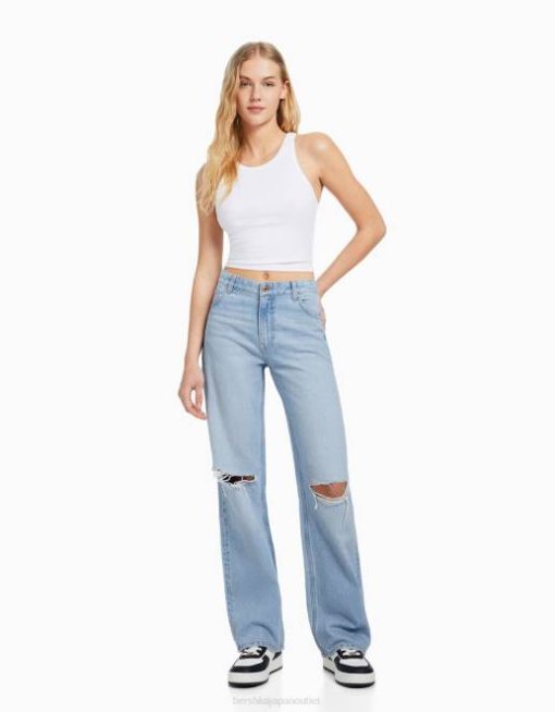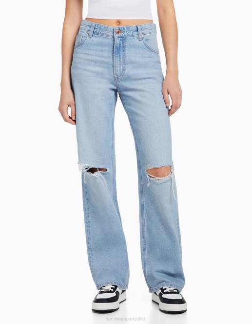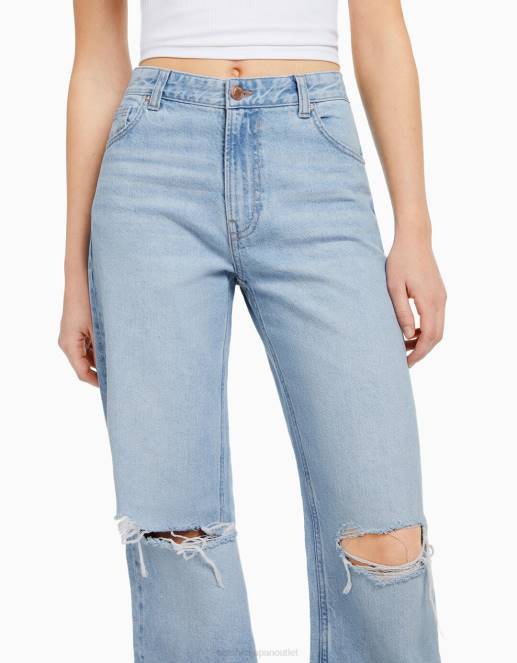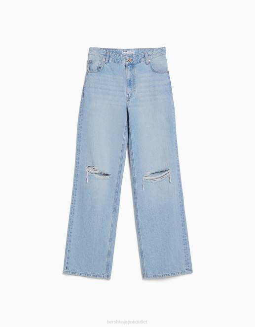 ユニセックス Bershka 90年代 リップド ワイドレッグ ジーンズ 60443956 衣類 ライトブルー