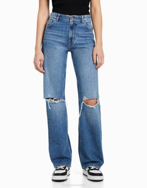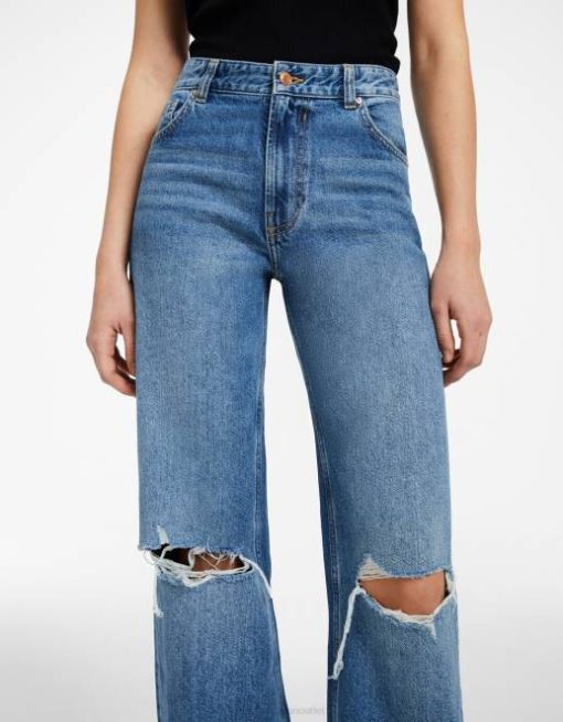 ユニセックス Bershka 90年代 リップド ワイドレッグ ジーンズ 60443957 衣類 青