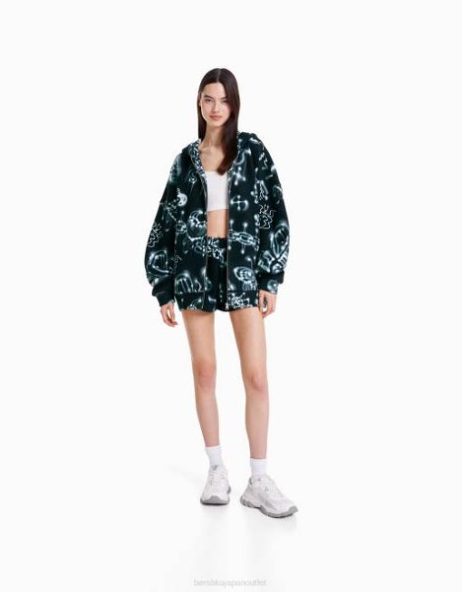 女性 Alehsy x Bershka プリントスウェットシャツとバミューダパンツのセット 60441213 衣類 黒