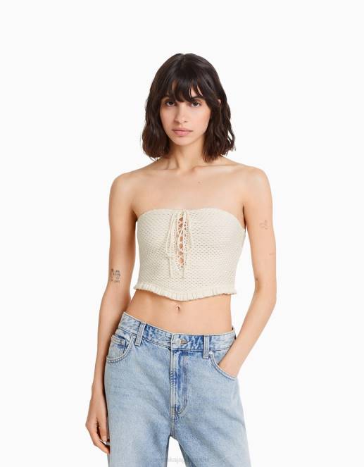 女性 Bershka かぎ針編みのトップ 6044752 衣類 オフホワイト